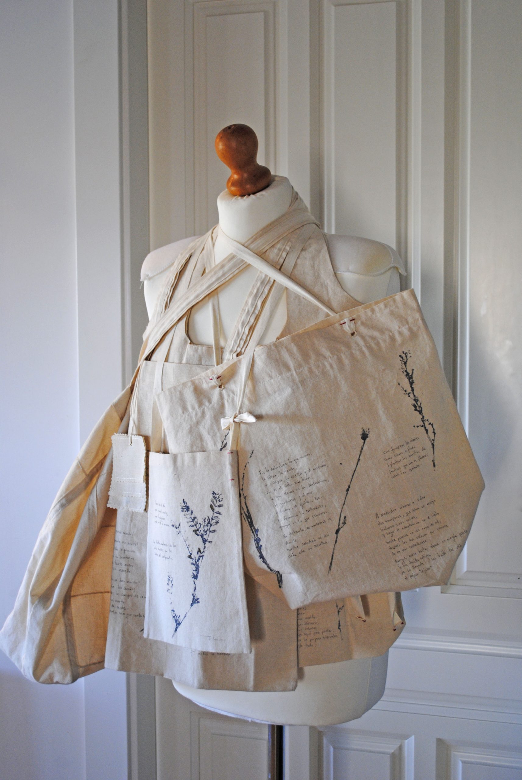 .Esta pequeña colección consta de cuatro piezas realizadas en lienzo crudo.